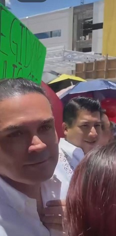 Antes de que arribara a la zona de Yerbabuena, a un costado de la Unidad Deportiva “Arnulfo Vázquez Nieto”, hubo mujeres que gritaron ¡rateros, rateros, rateros!, al ex primer edil y a su esposa.