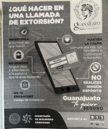 La semana pasada se estuvieron registrando llamadas, al parecer desde el reclusorio norte, por lo que los comerciantes de esa zona deben estar alertar y bloquear de inmediato las llamadas que no identifiquen o reportarlas a la Fiscalía General del Estado de Guanajuato.
