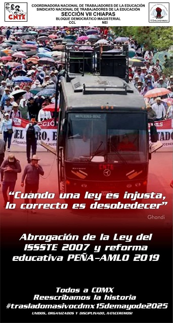 Dentro de los cuales se encuentran los trabajadores de la Educación en Chiapas quienes adelantaron que arribarán de manera masiva a la Ciudad de México asistiendo al llamado de la Coordinadora Nacional de Trabajadores de la Educación para estallar la Huelga Nacional.