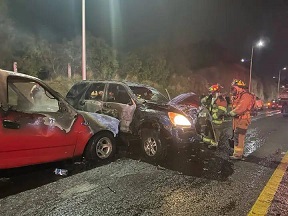 Un fuerte choque registrado la noche de ayer domingo en el acceso Diego Rivera, provocó el incendio de las dos unidades, sin embargo, solamente se registraron tres lesionados que fueron atendidos.
