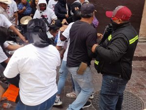Ayer sábado al mediodía, cuando se manifestaban tranquilamente un grupo de personas a convocatoria del empresario y ex candidato de morena a la alcaldía de Guanajuato, Jorge Rodríguez Medrano, cientos de personas que fueron trasladadas en camiones al centro histórico para generar violencia a los contrarios, tuvo como resultado una persona adulta mayor lesionada.