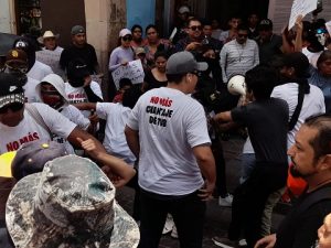Además, hubo camiones de la empresa ACNA, fueron contratados para traerlos a la manifestación y enfrentar a quienes conformaron la marcha pacífica. Tan organizados estuvieron los que convocaron al grupo de choque, que hasta playeras blancas les proporcionaron.