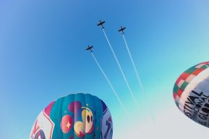 Mientras miles de asistentes cantaban al unísono el Himno Nacional, los pilotos de los globos aerostáticos activaron su lanzallamas al mismo tiempo, acción que provocó la emoción de las y los presentes.