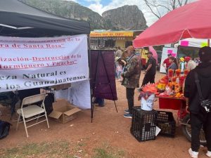 En el lugar conocido como Las Antenas, ubicada en la falda del cerro del Hormiguero, se colocó una carpa donde distribuyeron folletos que contenía información relacionada con la lucha para proteger el medio ambiente y los cerros antes citados.