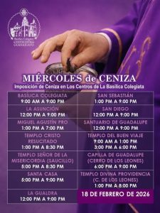 También se colocará la ceniza en el Oratorio de San Felipe Neri, Los Hospitales, San José, San Roque, Belén, Pardo, Cata, y en las colonias y fraccionamientos de la ciudad.