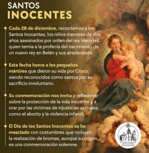 El 28 de diciembre fue establecido como un día de memoria, duelo y oración. Durante siglos fue una fecha solemne, nada de bromas, nada de risas. Con el tiempo especialmente en la edad media, la cultura popular transformó el dolor en ironía y así nació la tradición de las bromas, pero el mensaje original sigue vivo.