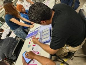 Mencionó que este día, los Consejos Distritales retomaron trabajos a las 8 de la mañana incrementando la capacidad operativa de acuerdo con los lineamientos para el desarrollo de los cómputos pasando de 3 grupos de trabajo con 10 puntos de escrutinio a 5 grupos de trabajo con 8 puntos de escrutinio.