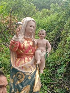 De acuerdo con la historia, el grupo de peregrinos que acompañó a la Virgen se desplazó a lo alto de la comunidad de Yerbabuena, y ahí imploraron intercesión divina, depositaron la imagen en un tambor del ejército y pidieron su auxilio con dos hachas de vela. Al siguiente día dos palomas blancas volaron sobre esta imagen y los guiaron hasta la villa.
