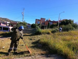 A raíz de las abundantes lluvias registradas este año desde el pasado mes de mayo, creció la hierba y representaba un riesgo para los habitantes por lo que el gobierno municipal envió una cuadrilla de trabajadores para limpiar el terreno.