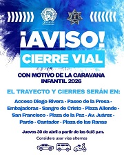 Está contemplado cerrar varias calles a partir de las seis y quince de la tarde y estos comenzarán en el Acceso Diego Rivera, para continuar en Paseo de la Presa, Embajadoras, Sangre de Cristo, Plaza Allende, San Francisco, Plaza de la Paz, Avenida Juárez, Pardo, Cantador y hasta la zona de Los Pastitos.