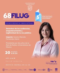 El mismo día, a las 16:00 horas en el Patio Jesuita, tendrá lugar la conferencia magistral “Derechos de las audiencias, empoderamiento y legitimidad de la voz pública”, impartida por Sandra Marcela Fernández Alaniz, presidenta por dos años de la Red de Radios Universitarias de México.