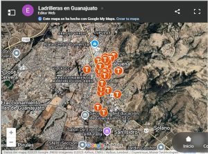 Refiere que al indagar un poco en el asunto “me encontré con artículos científicos que demuestran la presencia de aire contaminado generado por la actividad de hornos que fabrican ladrillos, los cuales se localizan en la comunidad Yerbabuena”. En la primera imagen se muestra la localización de las ladrilleras que actualmente y desde hace varios años operan en la zona.