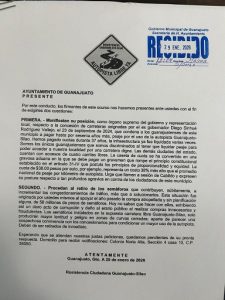 En sus redes sociales, el activista y abogado Roberto Saucedo Pimentel difundió el oficio que fue recibido en la Secretaría del Ayuntamiento a las 12:04 de hoy jueves.