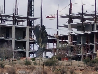Construida por el escultor Ricardo Motilla Moreno, la “Victoria Alada” que fue financiada con recursos del pueblo por parte de la gestión del ahora ex panista Juan Manuel “negro” Oliva Ramírez, en la actualidad literalmente quedó escondida por la obra en construcción de lo que será el complejo administrativo del gobierno estatal.