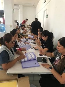 Una vez recibidas las boletas electorales, las Consejerías Electorales y el personal adscrito a cada Junta Distrital, inician los trabajos de conteo, sellado y agrupamiento de las boletas en función del número de electores por casilla electoral, para su posterior resguardo en las bodegas distritales.