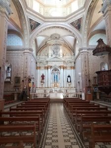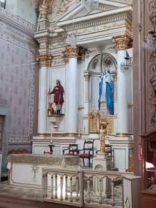 Repartido a lo largo del templo está la fina colección “via-crucis” óleos sobre tela decorados con marcos y hoja de oro.