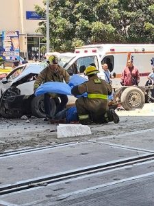 Elementos de distintas corporaciones como Protección Civil, Cruz Roja, Bomberos, entre otros se unieron para auxiliar a las personas que iban dentro de los vehículos.